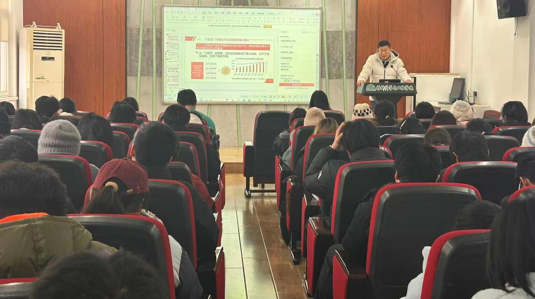 为深入学习贯彻党的二十届四中全会精神,引导青年学子把握国家发展大势、明确时代使命,近日,我院在4211报告厅举办2026年首场专题学习培训。学院党委副书记、副院长蔡志敏作专题辅导报告,学生骨干、本学期新发展党团员及入党积极分子代表参加学习。 蔡书记首先阐述了党的二十届四中全会的重大历史意义和现实意义。
