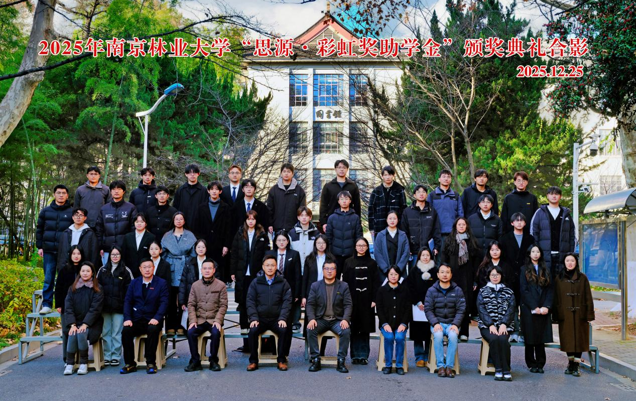 2025年12月25日下午,南京林业大学2025年“思源•彩虹奖助学金”颁奖典礼在材料科学与工程学院4211报告厅举行。千年舟集团研究院副院长徐俊,材料学院院长徐朝阳,化学工程学院党委副书记、副院长董波,家居与工业设计学院副院长刘玮,材料学院党委副书记、副院长蔡志敏,材料学院副院长夏常磊等出席此次颁奖典礼。典礼由蔡志敏主持。 典礼伊始,夏常磊副院长宣读2025年“思源·彩虹奖助学金”获奖名单。