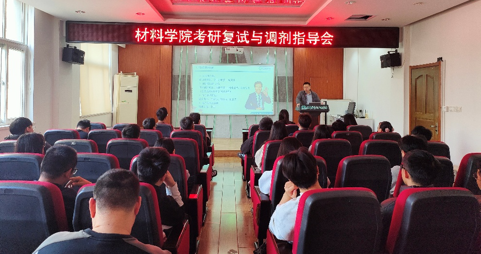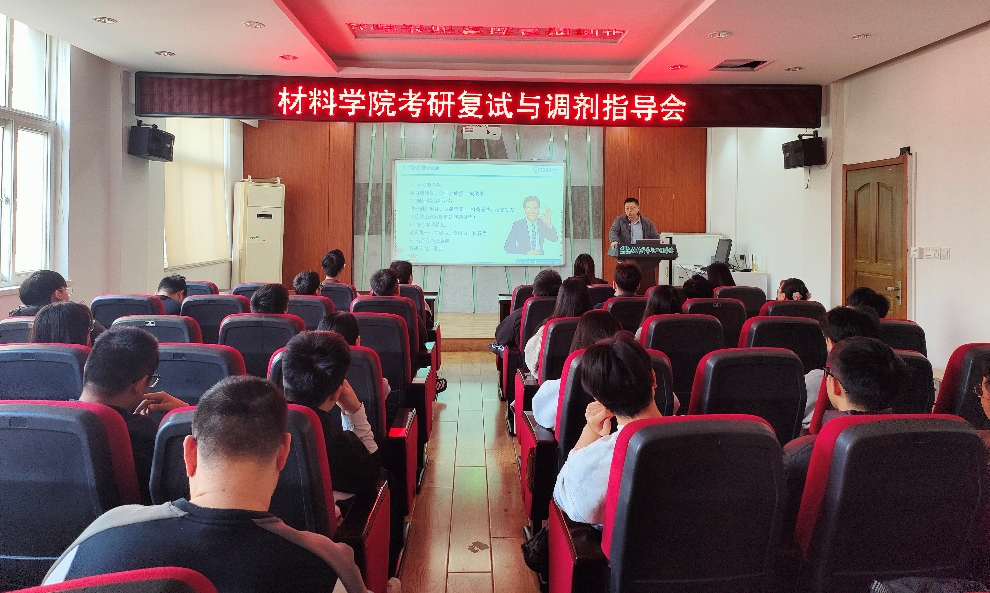 3月25日下午,材料学院在4211报告厅举办2026年研究生复试与调剂指导会,为即将参加考研复试及调剂的学子答疑解惑,提供精准指导,助力大家冲刺“上岸”。校研究生招生办公室主任顾轶凡、学院学工办主任刘智超、2026届毕业生辅导员曾思其、研究生教学秘书韩玉参加会议。 会上,顾轶凡主任结合研究生招生工作实际,围绕复试核心要点、调剂策略、材料准备规范等内容展开系统讲解。