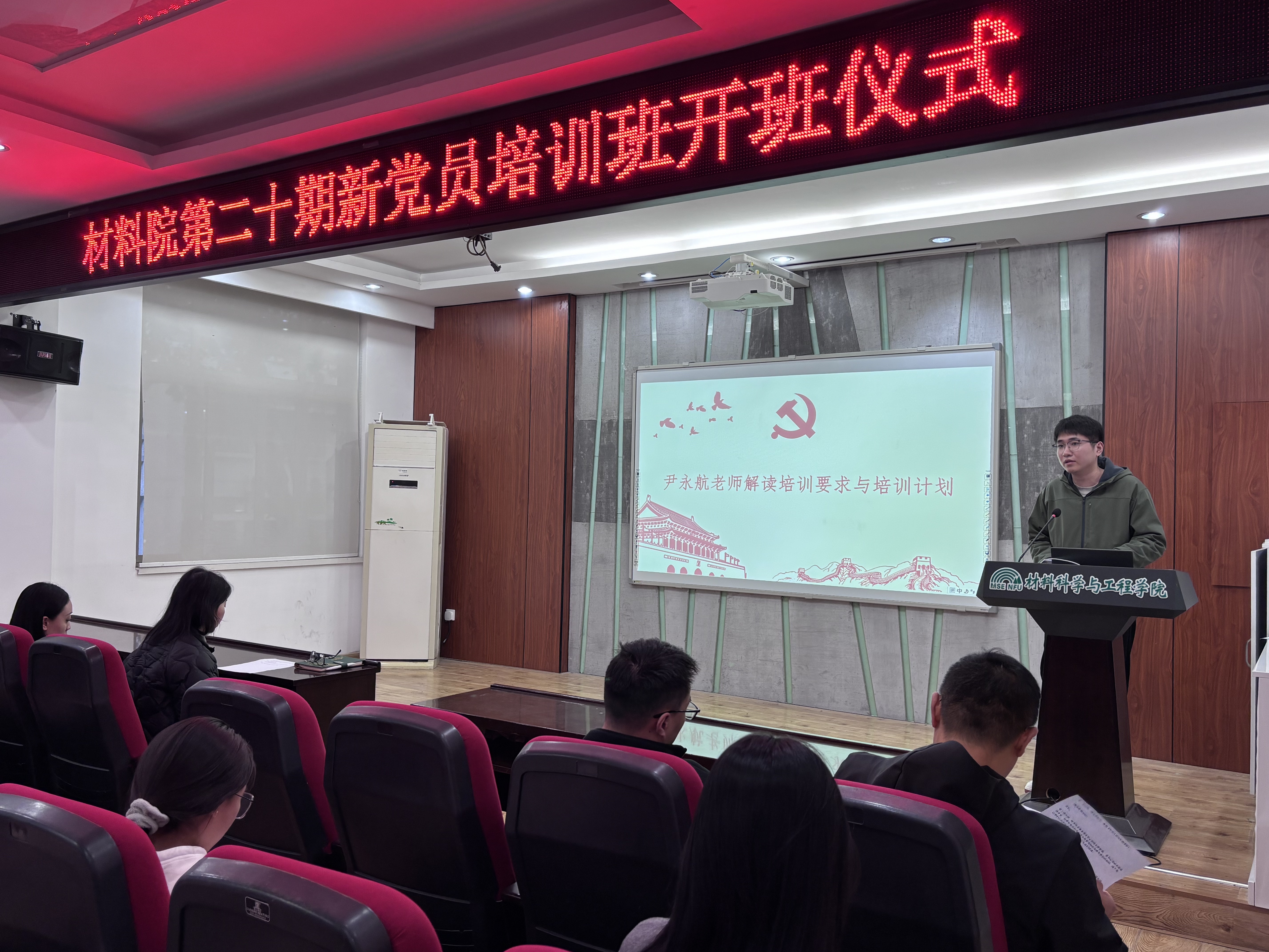 学生党建负责人尹永航就本期培训班的课程安排、教学形式、学习内容及考核纪律等作了详细说明。本次培训聚焦政治理论教育、党章党规、党纪教育等重点内容,着力提升新党员的政治觉悟与政治能力。