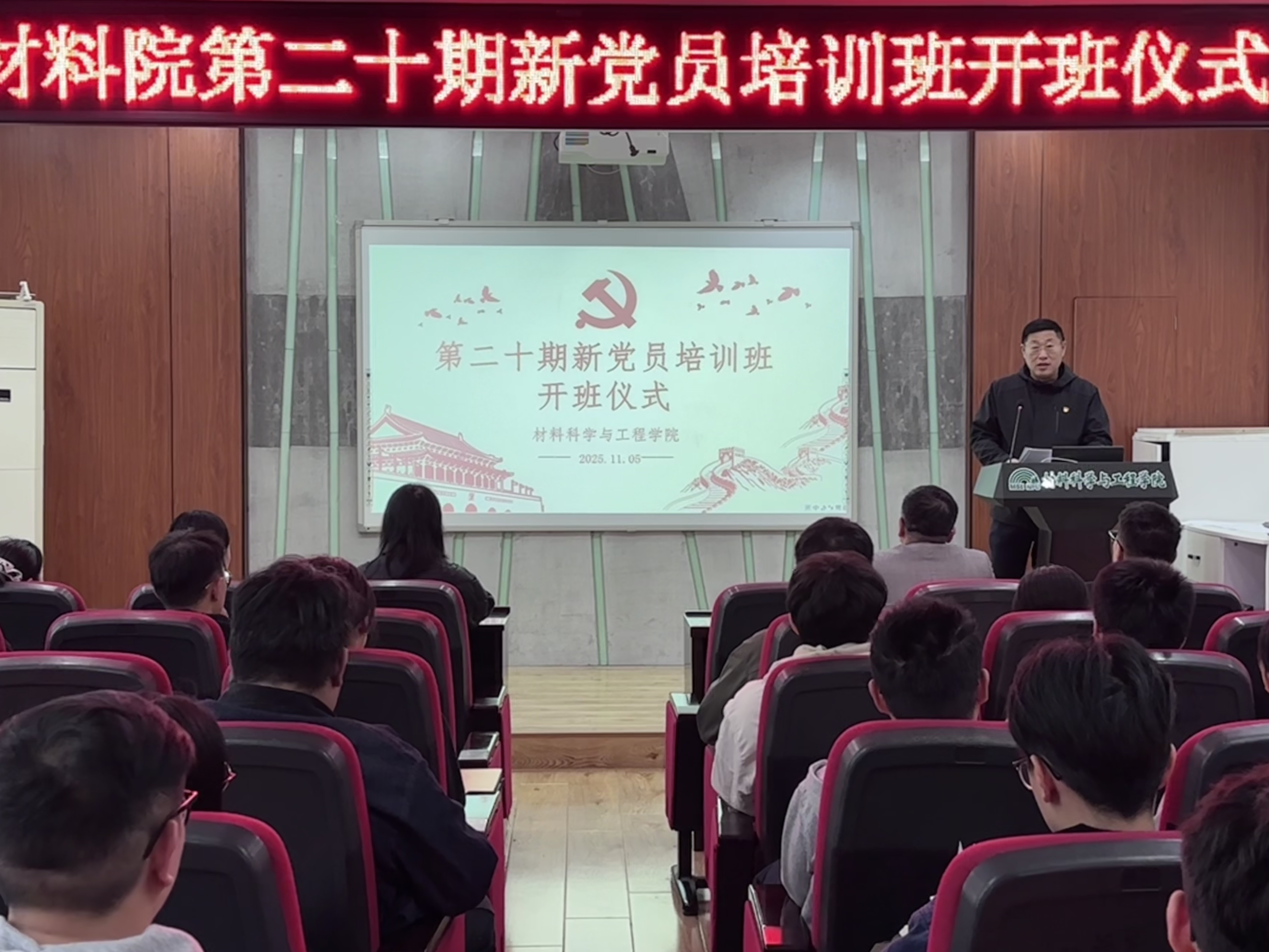 为深入学习习近平新时代中国特色社会主义思想,贯彻落实党的二十届四中全会精神,11月5日下午,材料学院分党校第二十期新党员培训班开班仪式在学院4211报告厅举行。学院党委书记孟国忠、党委副书记蔡志敏、组织员徐晔晗、学生党建负责人尹永航,辅导员曾思其、潘云天、杨泽宇及58名新党员参会。本次会议由蔡志敏主持。