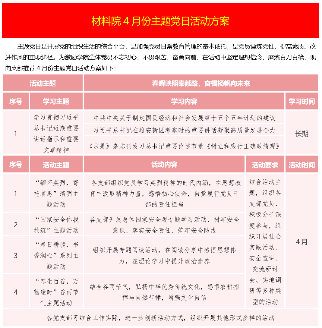 材料院4月份主题党日活动方案