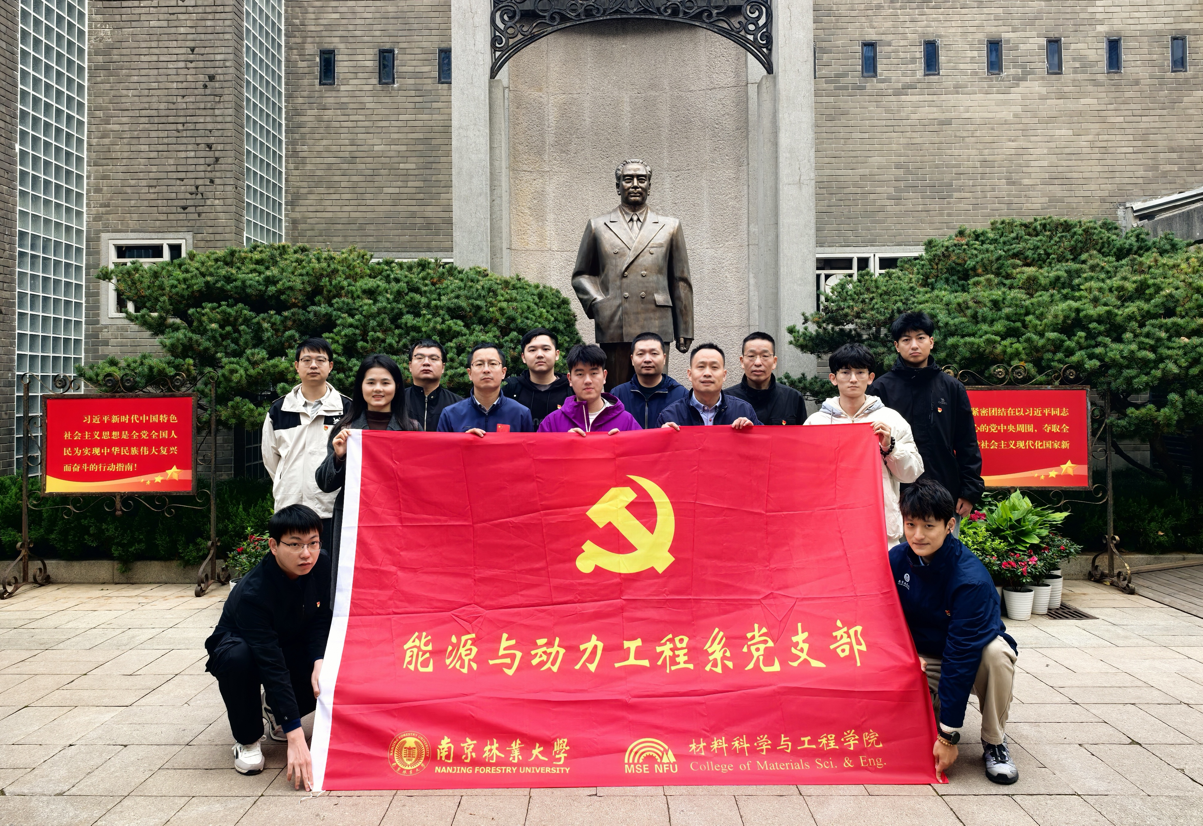 师生党员首先赴中国共产党代表团梅园新村纪念馆开展红色教育。在史料陈列区,大家认真观看泛黄文献、历史影像和复原场景,深入回顾周恩来、董必武等老一辈革命家在白色恐怖笼罩下坚持斗争、忠诚为民的光辉事迹。当集体重温“只要不背叛人民,永远依靠人民,我们在中国的土地上就一定有出路”这一铿锵论述时,全体党员深切感悟到“人民至上”始终是党的根本立场和力量源泉,也为理解后续“制度优势服务人民需求”奠定了坚实的思想基础。