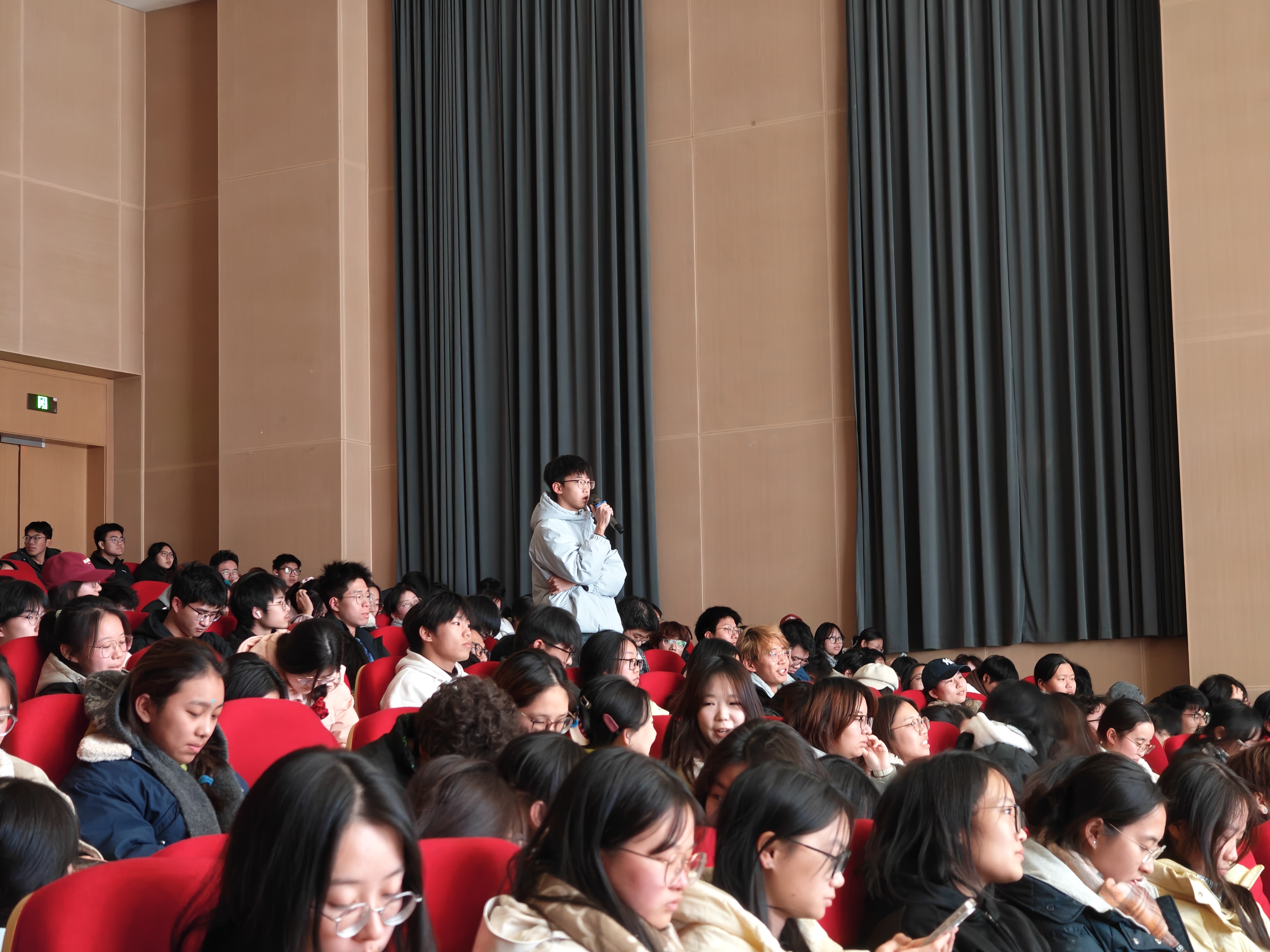 互动环节中,同学们踊跃提问,从影片的创作手法、角色塑造,到乡土文化的传承、青年一代的责任等多个角度与主创团队深入交流。“导演您认为像《水草长生》这样真实记录乡土、展现时间力量的影片,对当代年轻人理解传统、情感与成长有何意义?”“拍摄过程中遇到了什么困难,什么信念支持团队拍完这部电影的?”主创团队耐心细致地解答了每一个问题,现场氛围轻松而热烈。活动期间还设置了抽奖环节,主创团队抽取了幸运观众并赠送影片周边纪念品与签名照,将现场气氛推向高潮。最后,全体主创、工作人员与学生代表共同合影留念,定格下这场充满温度的文化之约。