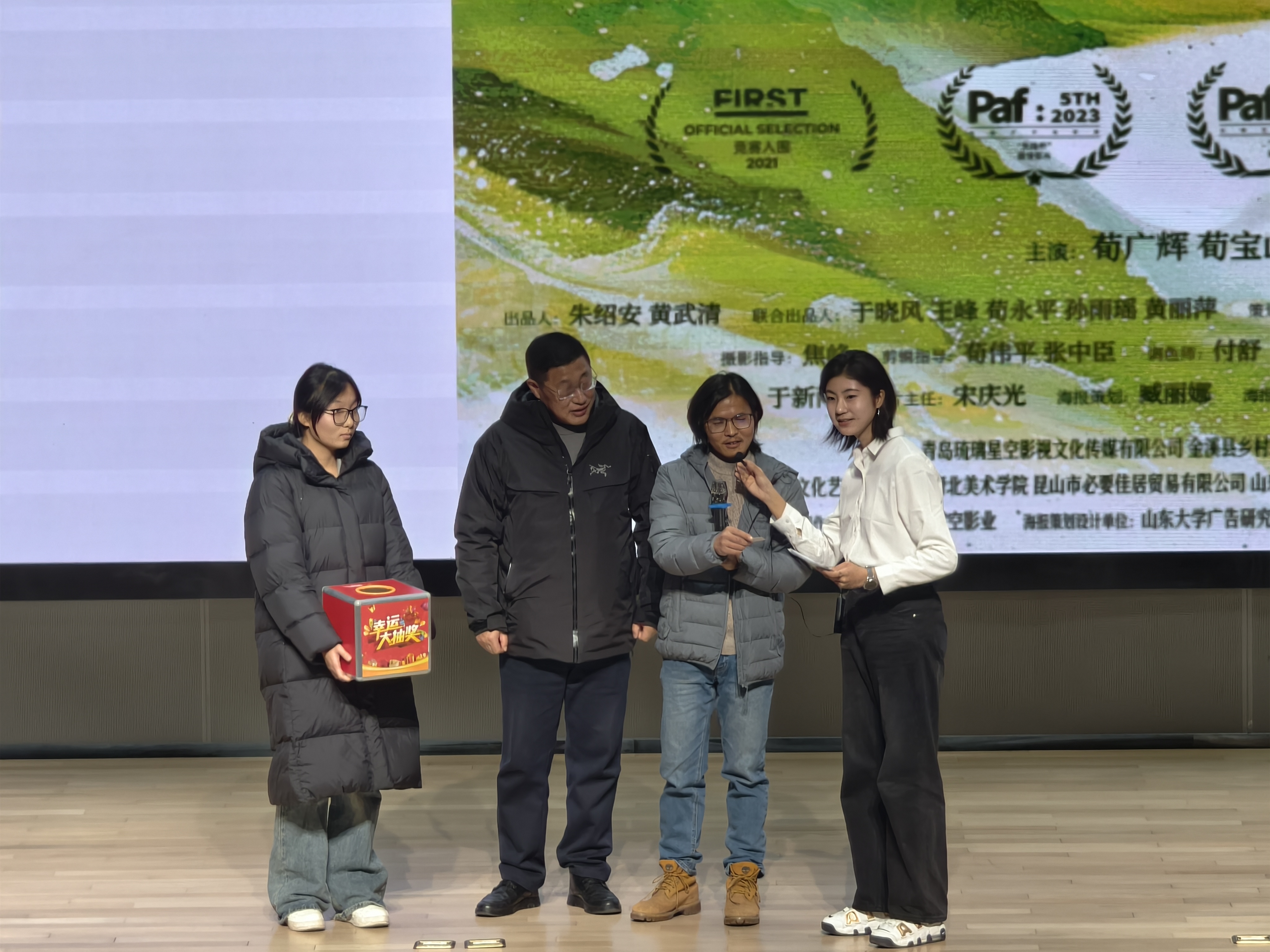 影片放映结束后,导演荀伟平登台,与现场师生展开了一场热烈的互动交流。荀伟平导演分享了影片的创作历程,讲述了拍摄过程中克服环境艰苦、设备故障等困难的难忘经历,以及坚持记录乡土文化的初心。“我们希望通过这部影片,让更多年轻人关注脚下的土地,记住乡愁,在传统与现代的碰撞中找到自己的精神坐标。” 导演的分享赢得了现场师生的阵阵掌声。