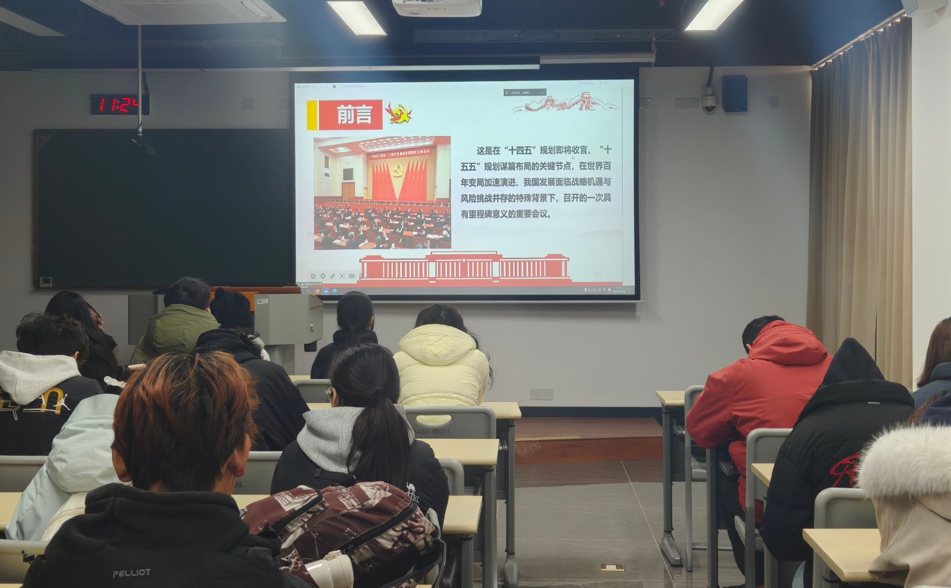 团课伊始,刘老师围绕党的二十届四中全会召开的时代背景、重大意义、主要成果及《中共中央关于制定国民经济和社会发展第十五个五年规划的建议》的核心内容进行了系统梳理和深入阐释。她紧密结合青年成长实际与高校人才培养定位,以通俗生动的语言深入阐释了全会提出的“加快高水平科技自立自强,引领发展新质生产力”“建设现代化产业体系”等重要部署与青年学子的内在联系,着重强调青年一代要胸怀“国之大者”,将个人理想追求融入国家发展大局,在强国建设、民族复兴的征程中找准自身定位。