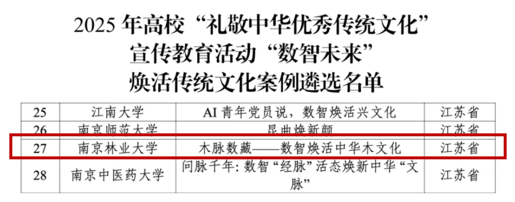 近日,教育部思想政治工作司正式公布2025年高校“礼敬中华优秀传统文化”宣传教育活动遴选结果。经自主申报、高校审核推荐及教育部两轮专家评审的严格筛选,我院申报的作品《木脉数藏——数智焕活中华木文化》从全国众多参评作品中脱颖而出,成功入选“数智未来”焕活传统文化案例优秀作品名单。此次全国共遴选出该类优秀作品103件,此次获评标志着我院在推动中华优秀传统文化创造性转化、创新性发展方面取得了突破性进展。