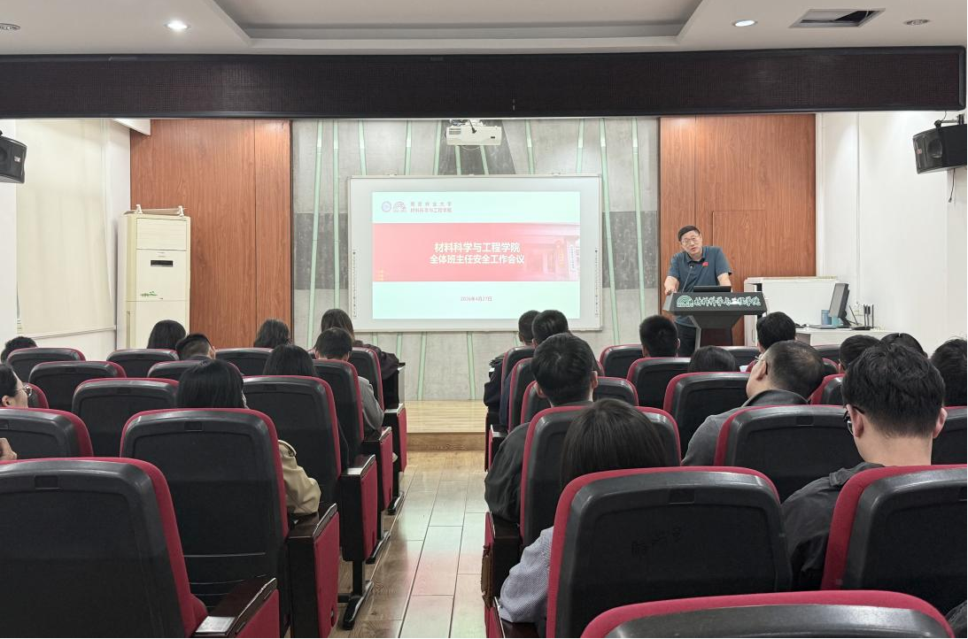 为深入贯彻落实校园安全工作部署,进一步压实班级安全管理责任,切实保障学生身心健康与校园和谐稳定,4月27日下午,材料学院在4211报告厅召开全体班主任安全工作专题会议。会议由学院党委副书记、副院长蔡志敏主持,全院全体班主任、辅导员参会,锁金村派出所民警陈鸿志受邀到场开展反诈专题宣讲。